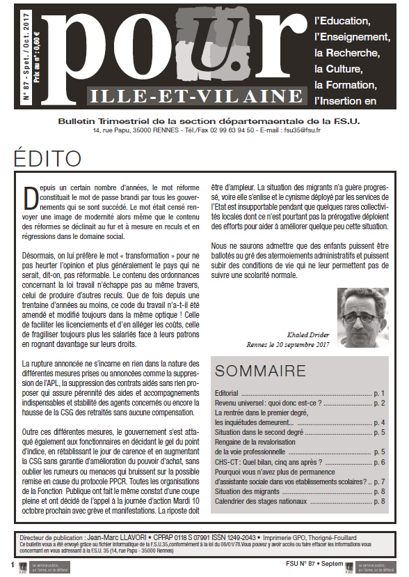 Comme expliqué dans la publication de la FSU35 de novembre [...]