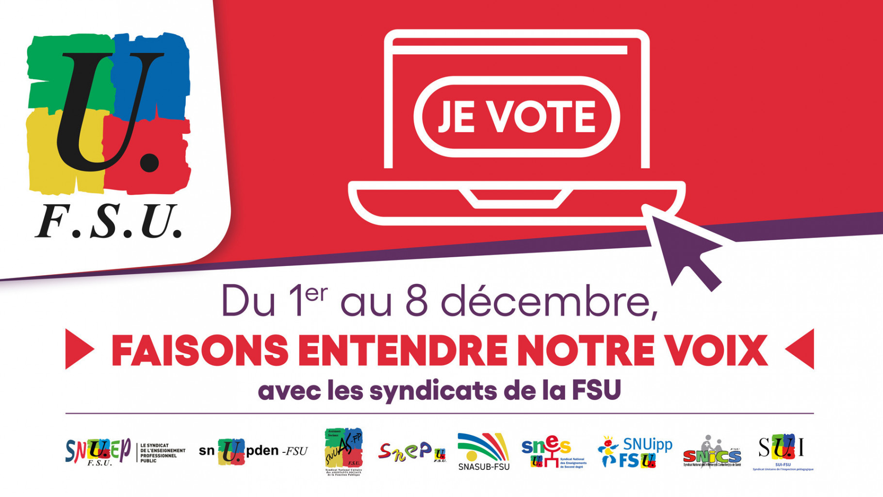 Pour nos métiers, pour nos salaires, pour nos conditions de travail, votez et faites voter FSU !