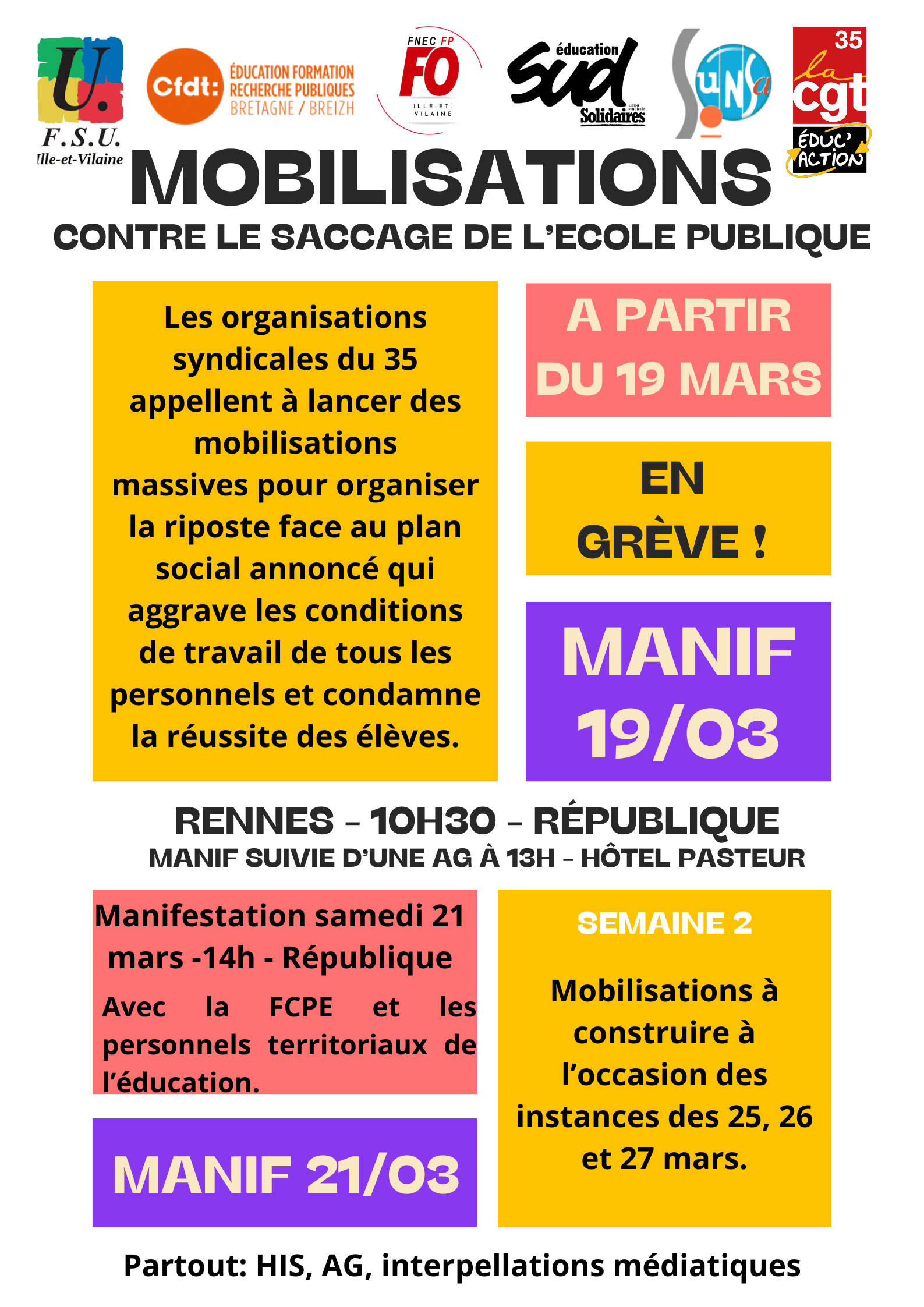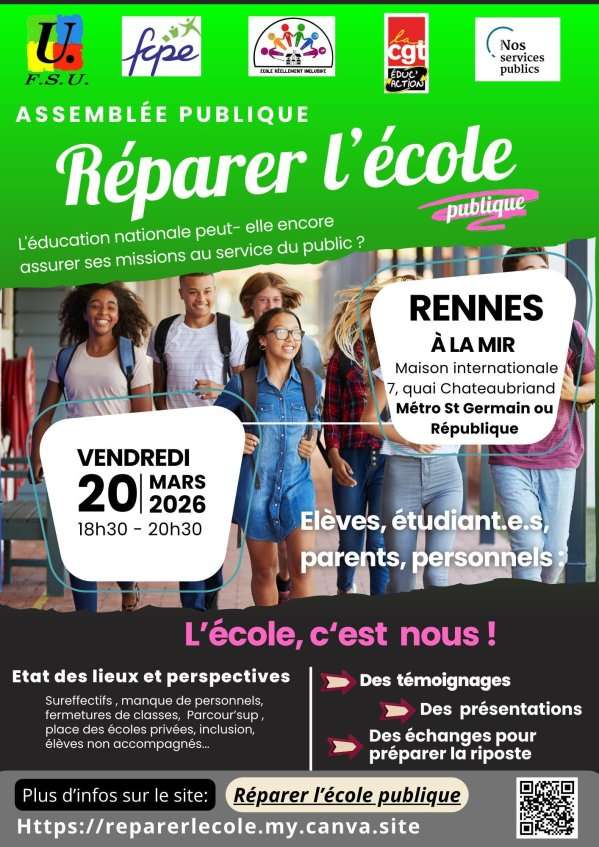2e Réunion Publique « Réparer l’école » le 20 mars, co-organisée par la FSU35